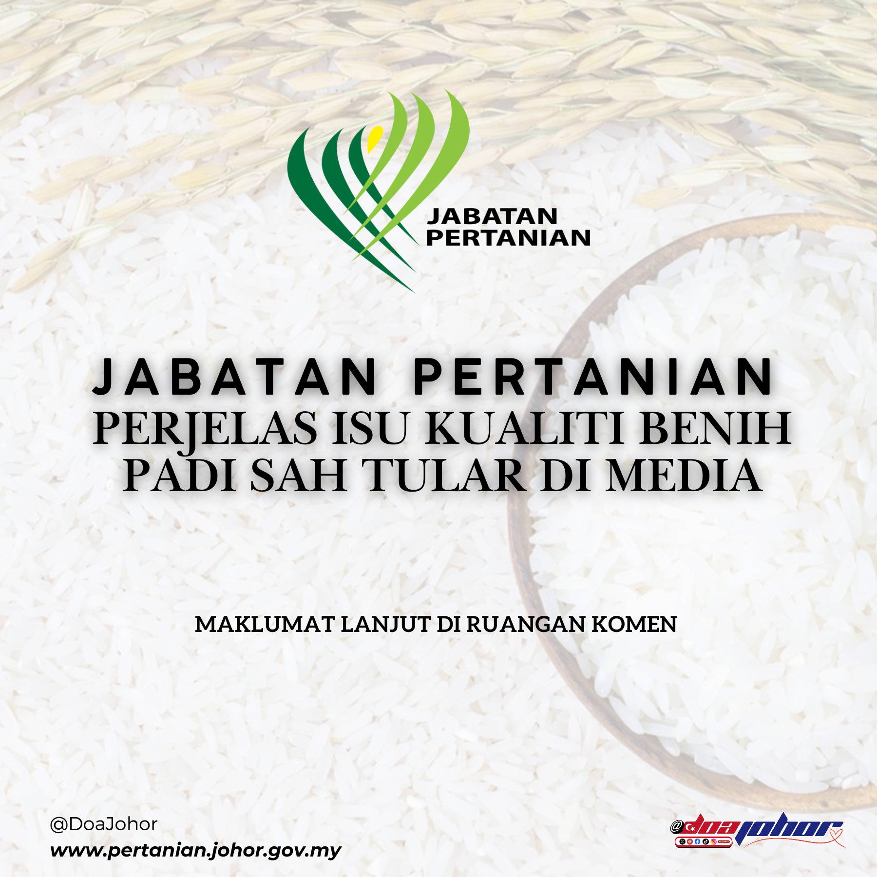 Putrajaya, 11 Mac 2025 – Merujuk kepada beberapa laporan media berkaitan isu kualiti benih padi sah, Jabatan Pertanian ingin menjelaskan dakwaan mengenai kemerosotan kualiti benih padi sah.