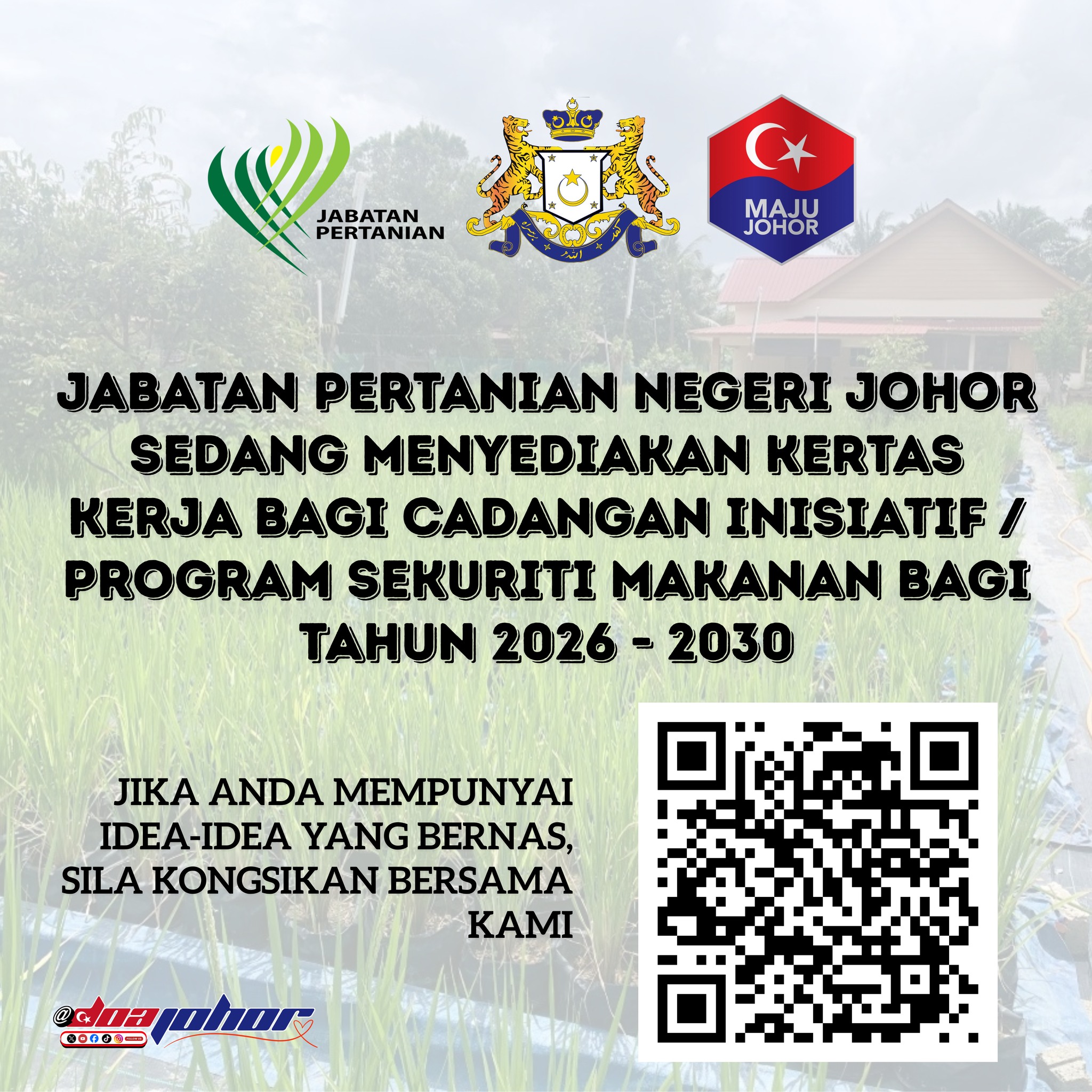 Jabatan Pertanian Negeri Johor sedang menyediakan Kertas Kerja Bagi Cadangan Inisiatif / Program Sekuriti Makanan bagi Tahun 2026 – 2030