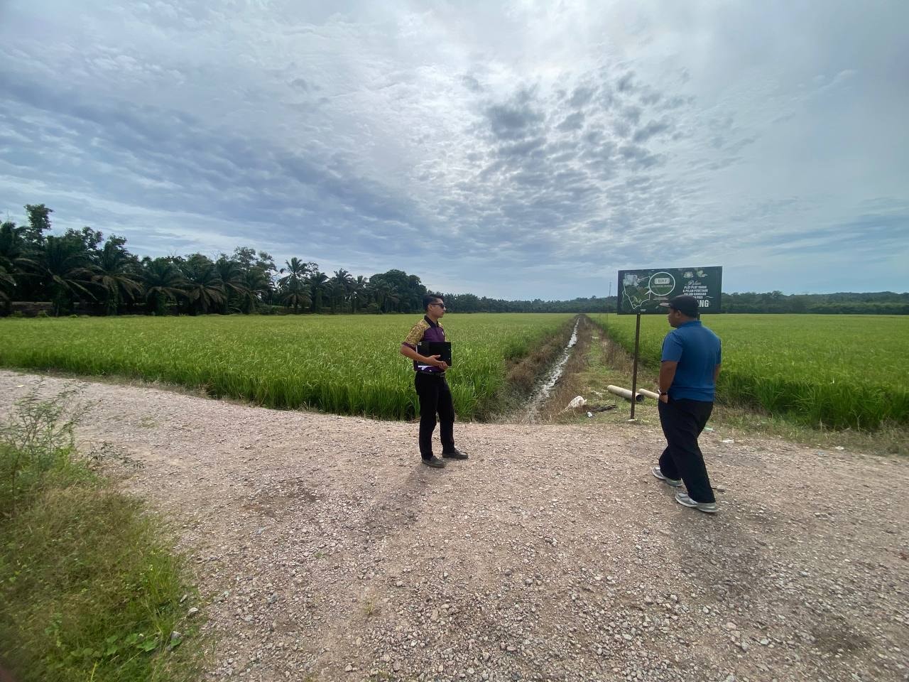 Lawatan Pemantauan Projek Tanaman Padi di Sawah Kahang oleh En. Muhamad Rizzuan bin Mansor Penolong Pegawai Pertanian Pengembangan dan En. Mohd Rahim bin Zailan APT Mukim Kluang 2 / Kahang yang baru.