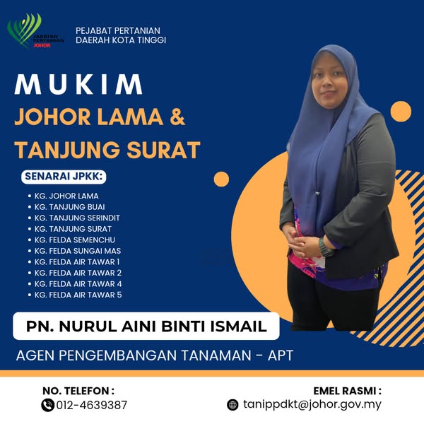 Adalah dimaklumkan bahawa terdapat pertukaran pegawai 𝐀𝐠𝐞𝐧 𝐏𝐞𝐧𝐠𝐞𝐦𝐛𝐚𝐧𝐠𝐚𝐧 𝐓𝐚𝐧𝐚𝐦𝐚𝐧 (𝐀𝐏𝐓) di bawah seliaan Pejabat Pertanian Daerah Kota Tinggi.