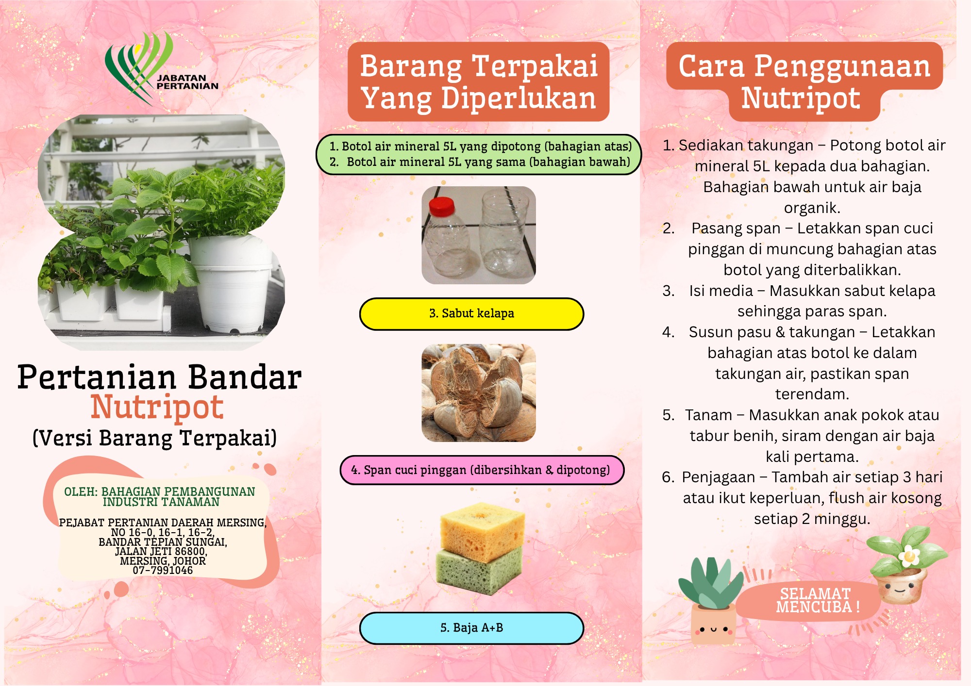 Info ini disediakan oleh Nur Adila binti Mustafa, pelajar intern dari Universiti Putra Malaysia (UPM), di bawah bimbingan Bahagian Industri Tanaman (BPIT) Daerah Mersing.