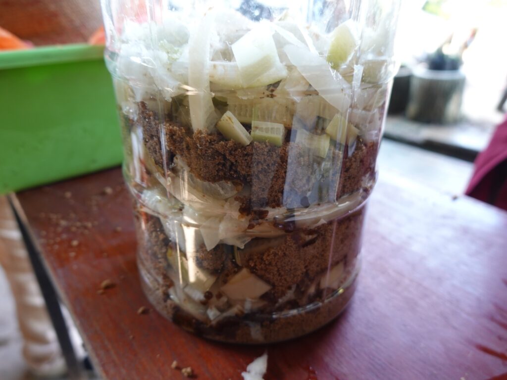 Proses Penapaian: Menggunakan mikroorganisma efektif (EM) dalam dedak untuk merawat sisa.